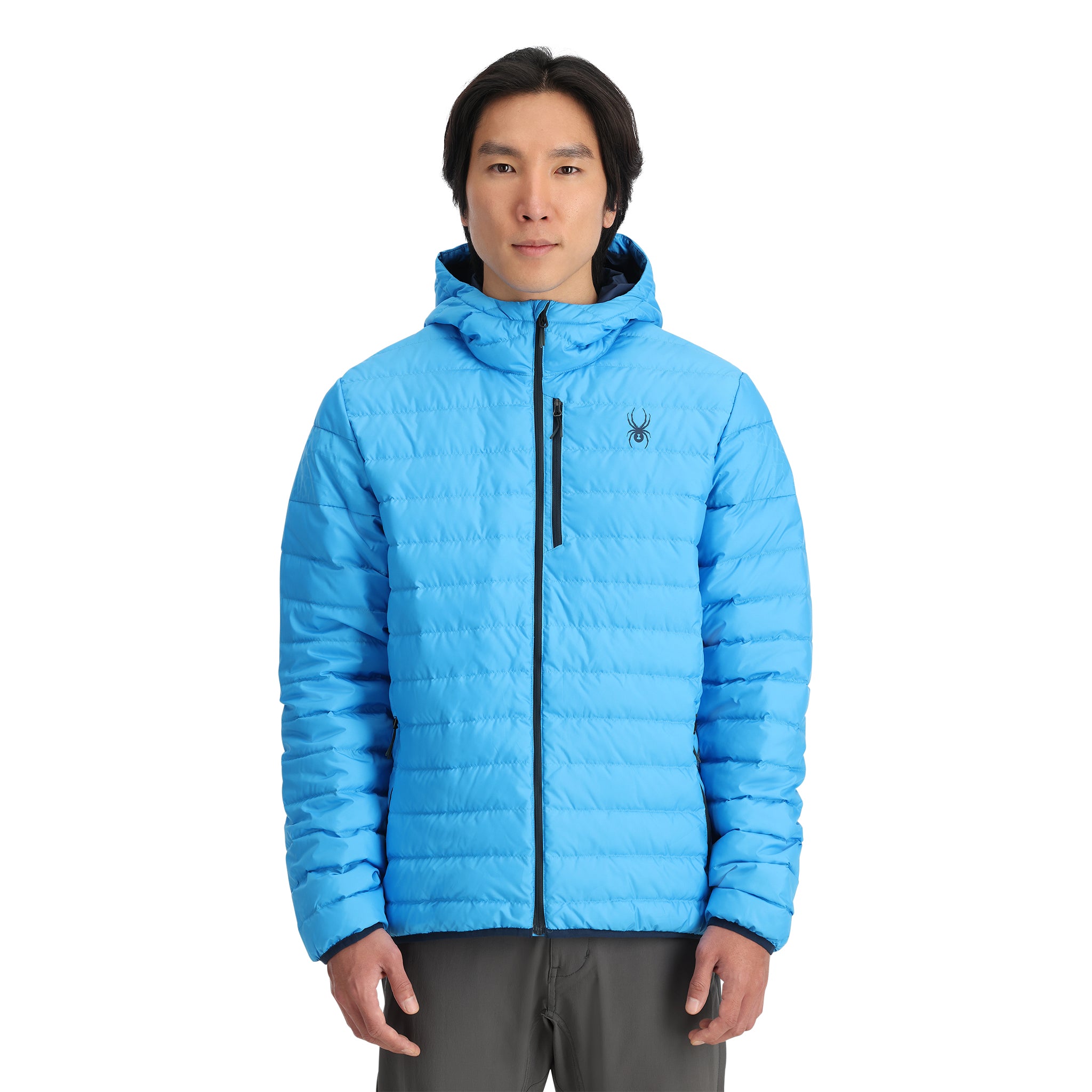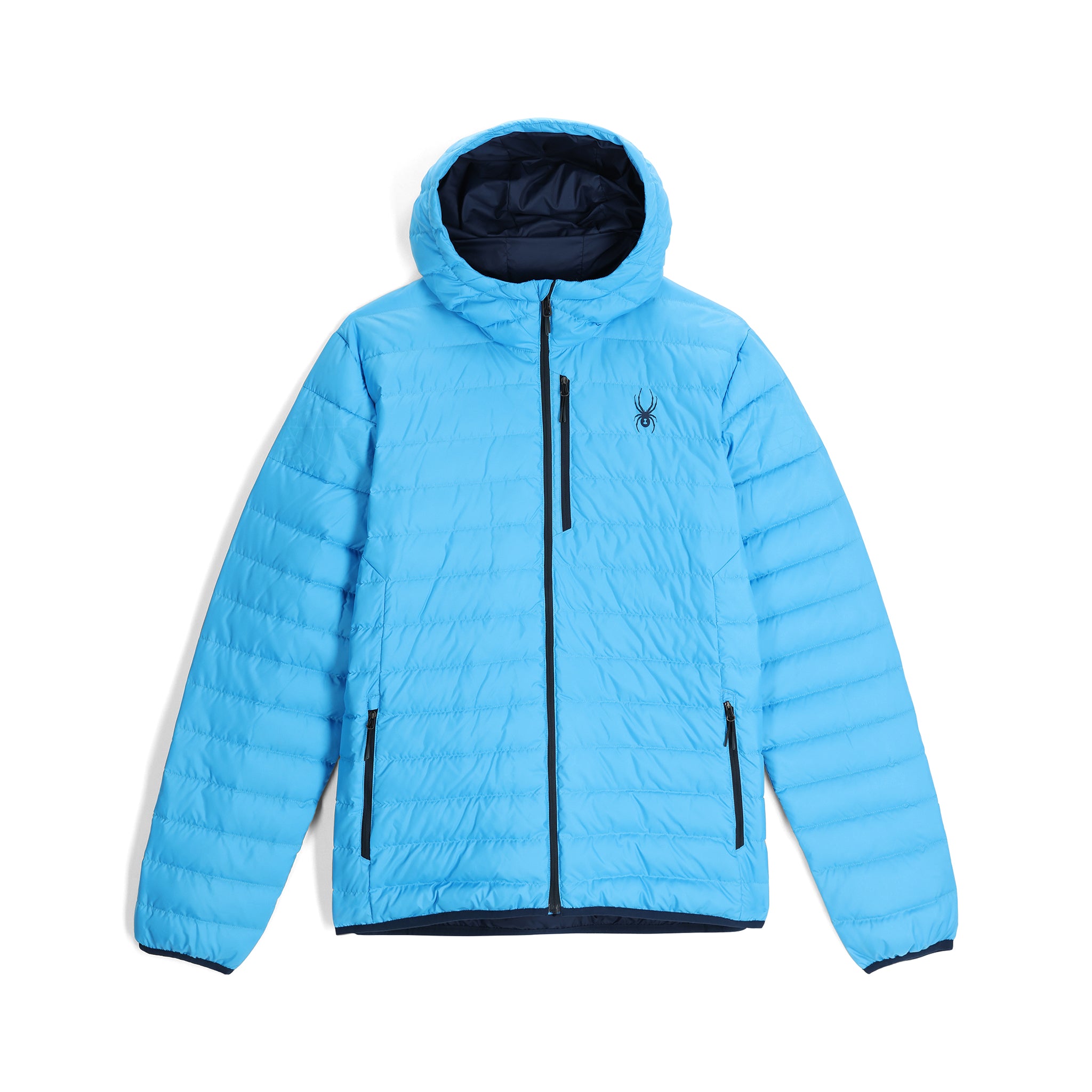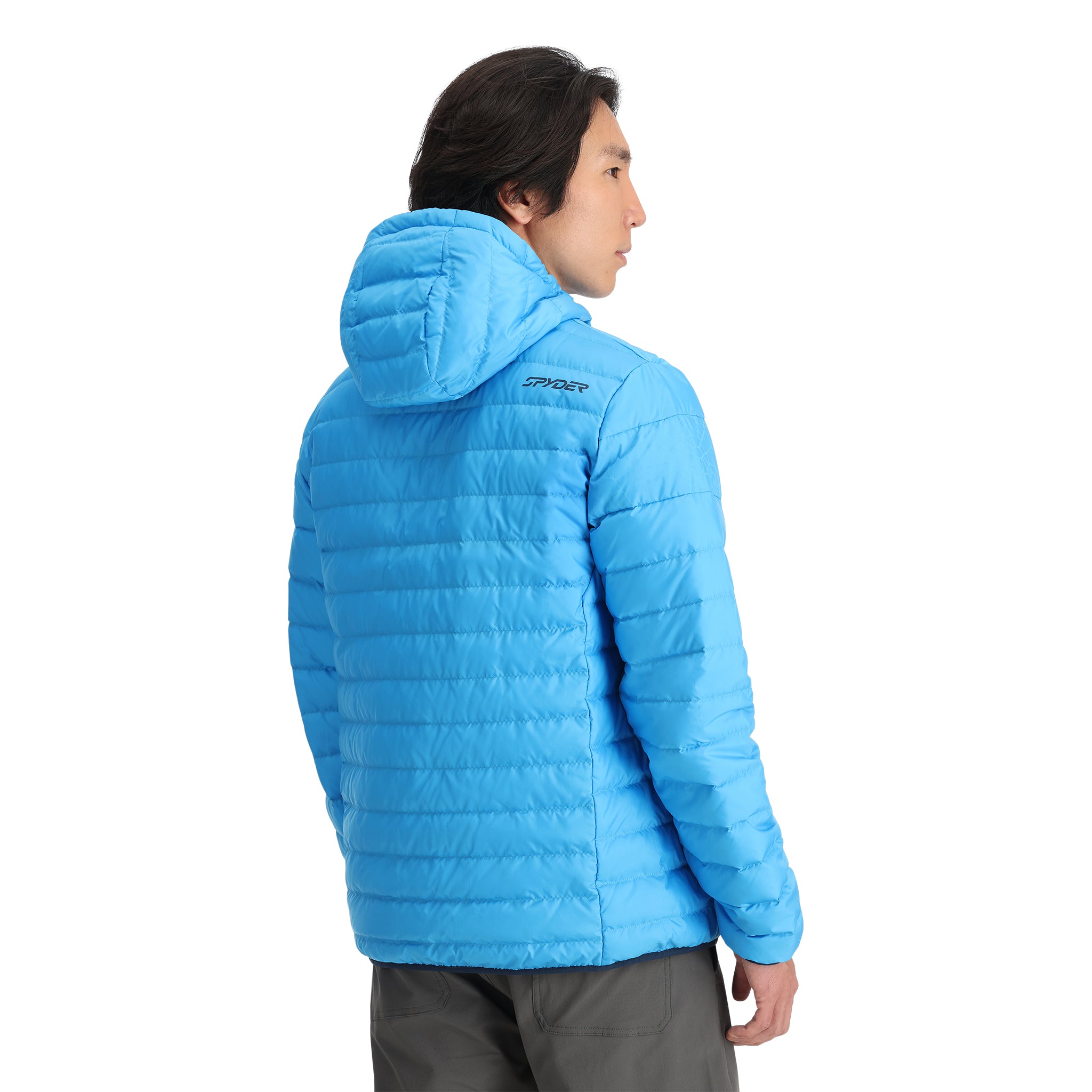 The Zenith Hooded Down Jacket is designed for lightweight warmth. It is made from 100% recycled downproof polyester with DWR and filled with 700 fill traceable duck down. The jacket includes YKK® zippers at the center from front and hand pockets, elasticized wrist cuffs and hem, and subtle matte web graphics on the sleeves.
