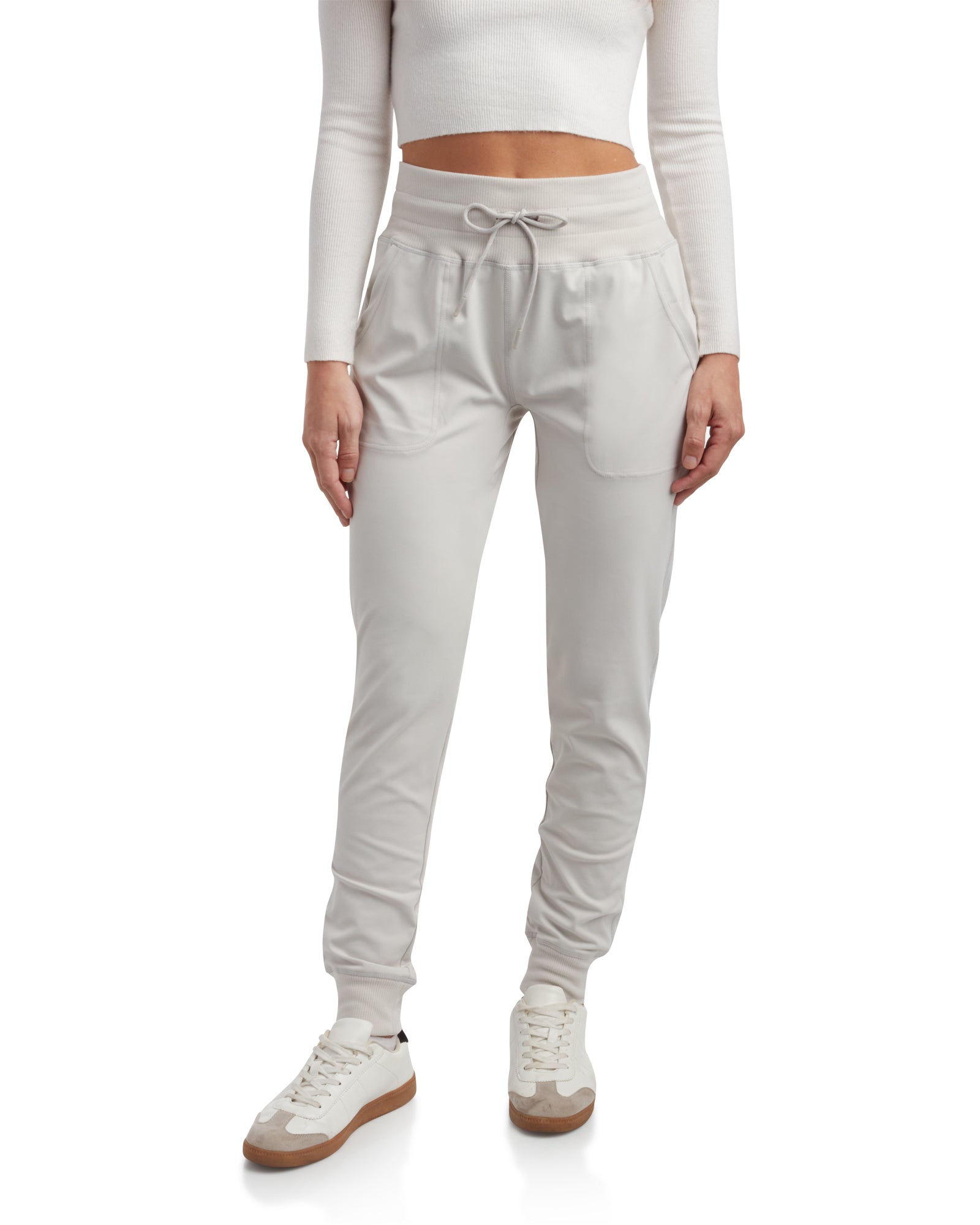 Experience cloud-like comfort with these ultra-soft women’s joggers, crafted from brushed knit and 4-way stretch fabric for all-day ease and flexibility. With a flattering high waistband, breathable moisture-wicking design, and UPF 30 protection, they’re perfect for everything from lounging to outdoor adventures.
