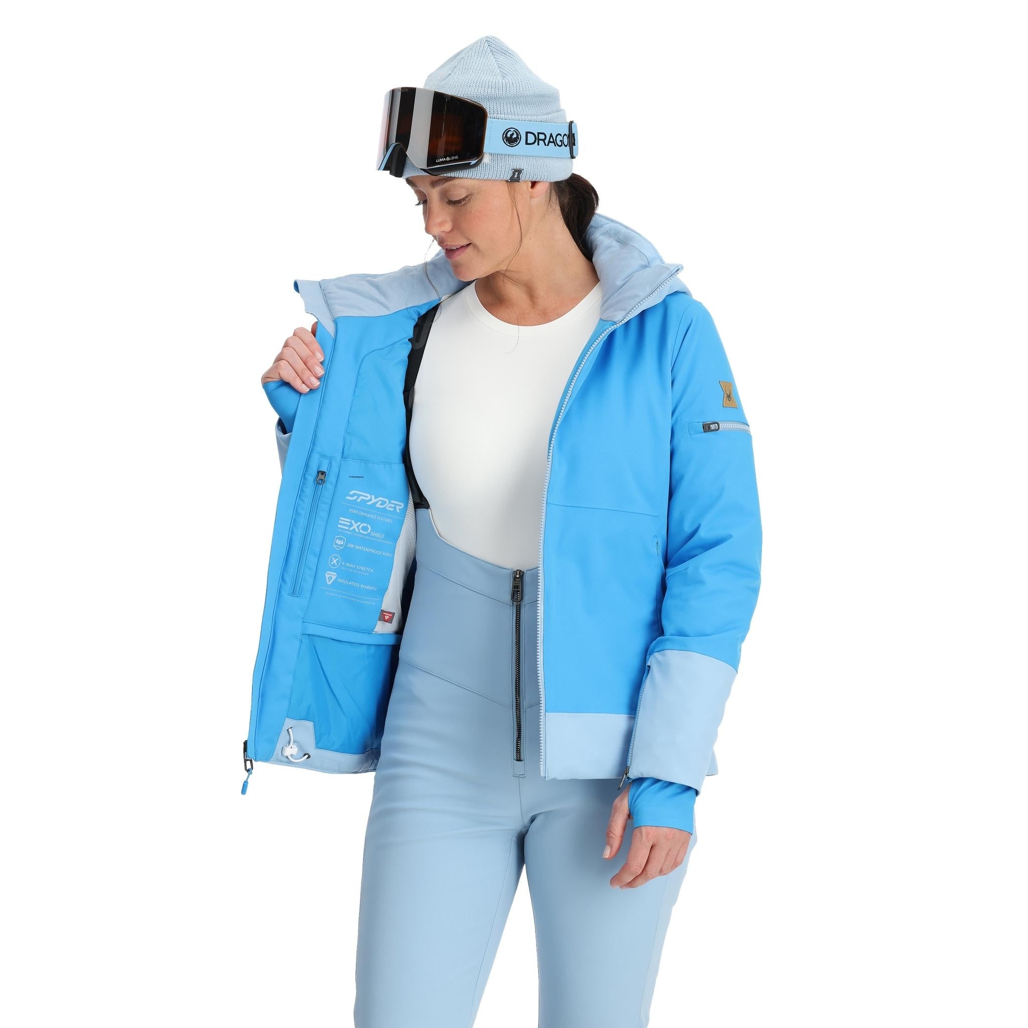 The Soleil brings a clean, sporty new design to the Spyder line this year. Made for the woman who doesn’t want her jacket to hold her back on the mountain, the Soleil’s targeted 4-way stretch paneling and 30K/20K waterproof breathability make this jacket stand out from the competition. Zippered sleeve gussets, interior stretch cuffs, and thumbholes ensure your sleeves stay securely in place, preventing snow from sneaking between your glove and jacket cuff. Whether you’re rocking pink or blue to stand out or keeping a low profile in the black or white colorways, Soleil’s simple, refined color blocking will surely bring your whole ski kit together seamlessly!