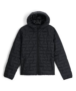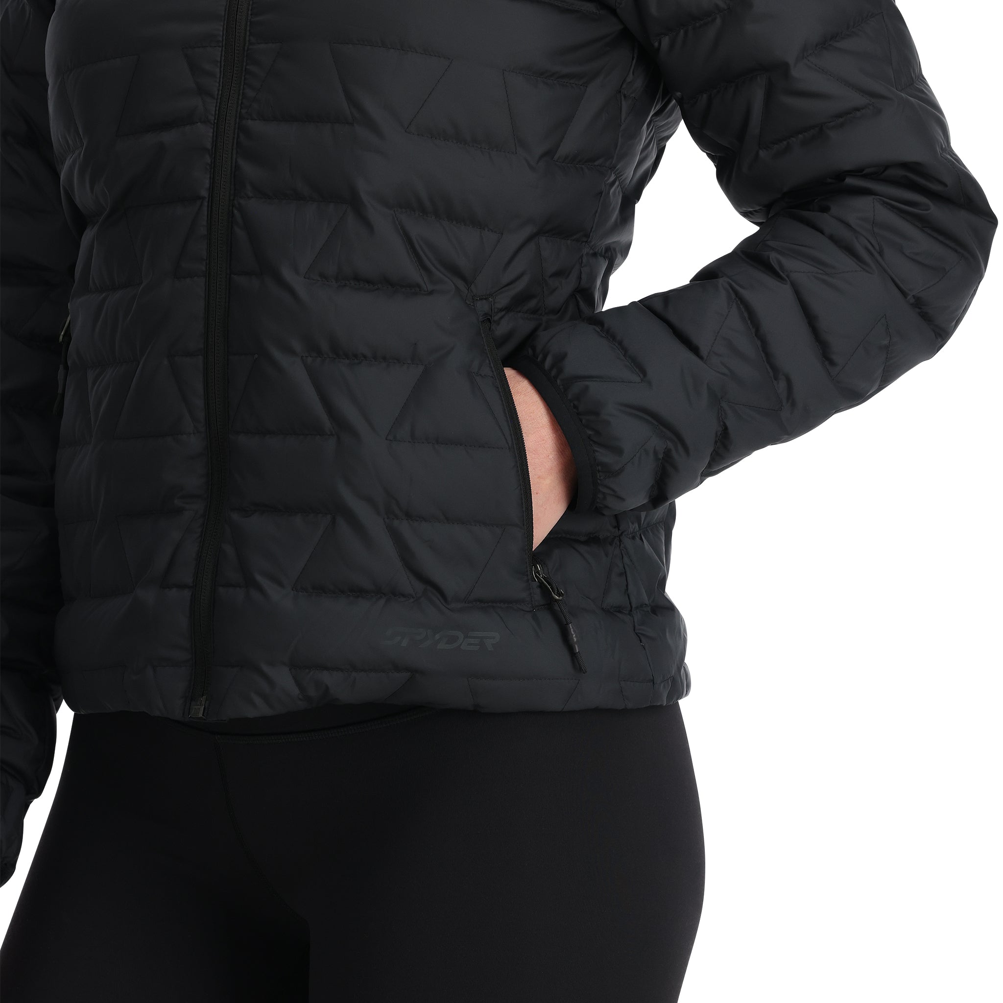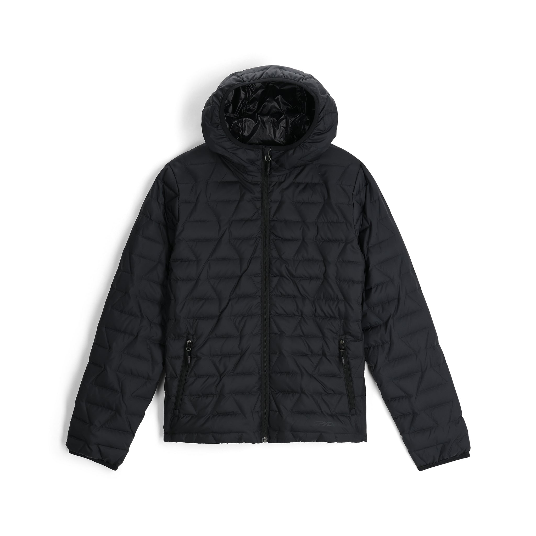 The new Zenith Hooded Down Jacket is designed for ultimate warmth. It is made from 100% recycled polyester with a shiny, down-proof finish and DWR coating and filled with 700 fill traceable duck down and PFAS-free components. The jacket includes YKK® zippers on the front and hand pockets, elasticized wrist cuffs and hem, and subtle matte web graphics on the sleeves.