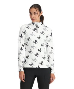 The custom Spyder prints on these ½ zip t-necks feature unique designs that will go with any outfit. This stretch polyester t-neck is an ideal moisture-wicking base layer while out on the mountain or as a light layer doing any active activity.